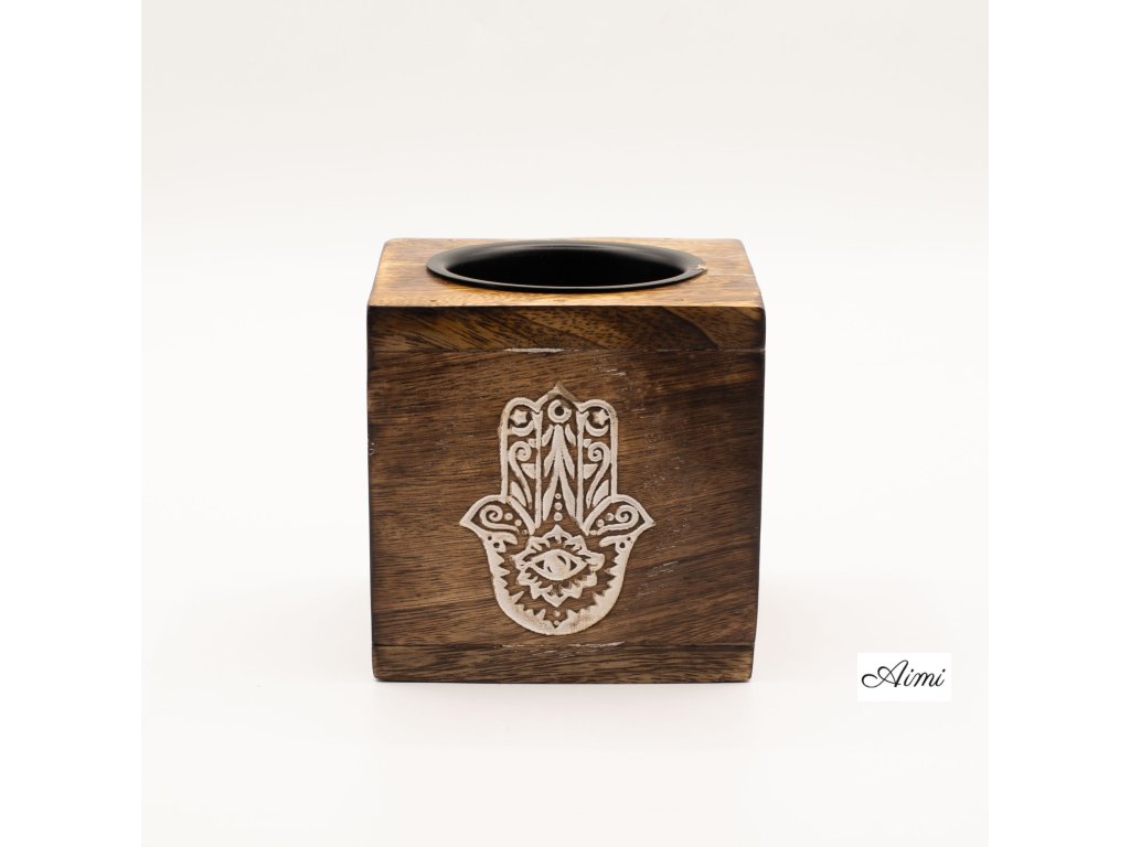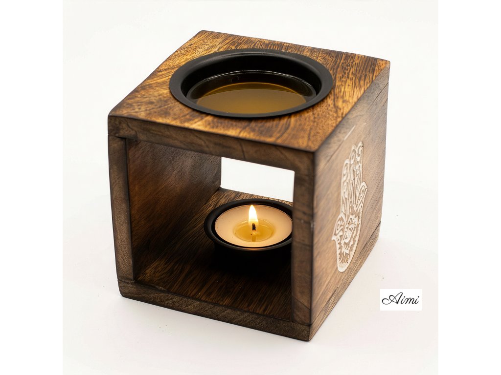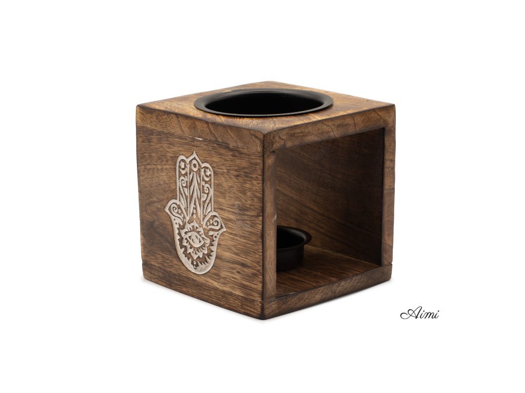 Štvorcová Aroma Lampa z Mangového Dreva - Hamsa