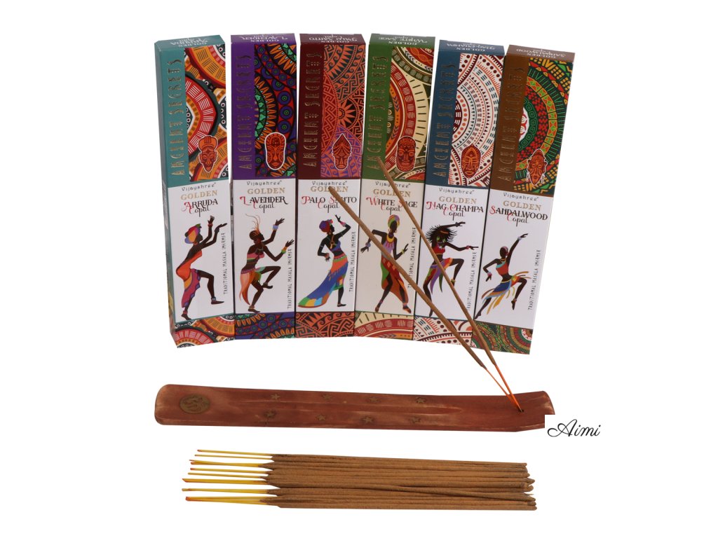 Možnosti vôní: Sada obsahuje výber šiestich obľúbených vôní Golden Kopál, vrátane Bielej Šalvie, Palo Santo, Nag Champa, Santalového Dreva, Levandule a Arrudy. Každá vôňa má svoje jedinečné vlastnosti na čistenie energie, relaxáciu, zameranie a duchovnú pohodu.