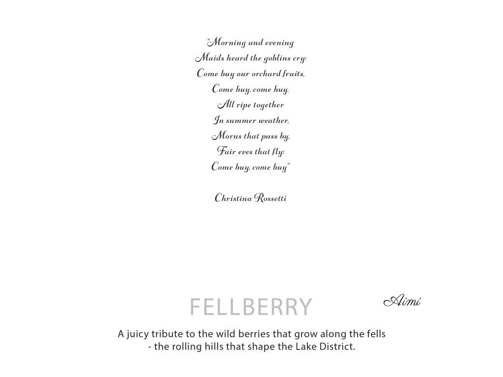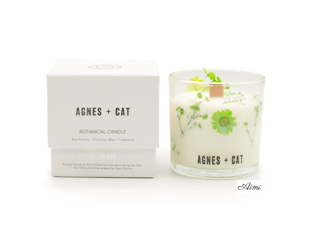 Agnes + Cat Fellberry je jasná, ovocná vôňa inšpirovaná divokými bobuľami rastúcimi na pahorkoch Lake District. Ilustrovaný obal zobrazuje zvlnené kopce a krajinu plnú plodov, čím dodáva sviečke hravý, no zároveň prirodzený charakter, ktorý sa výborne hodí na darovanie aj sezónne prezentácie.