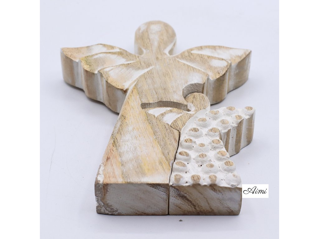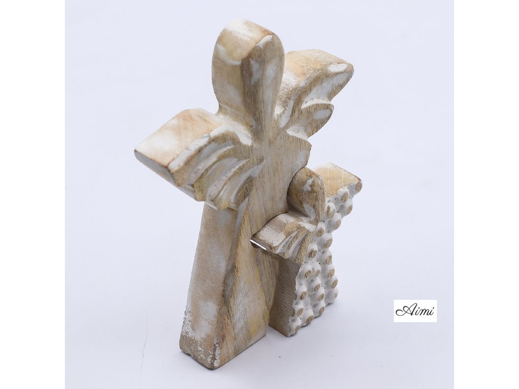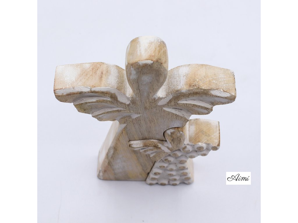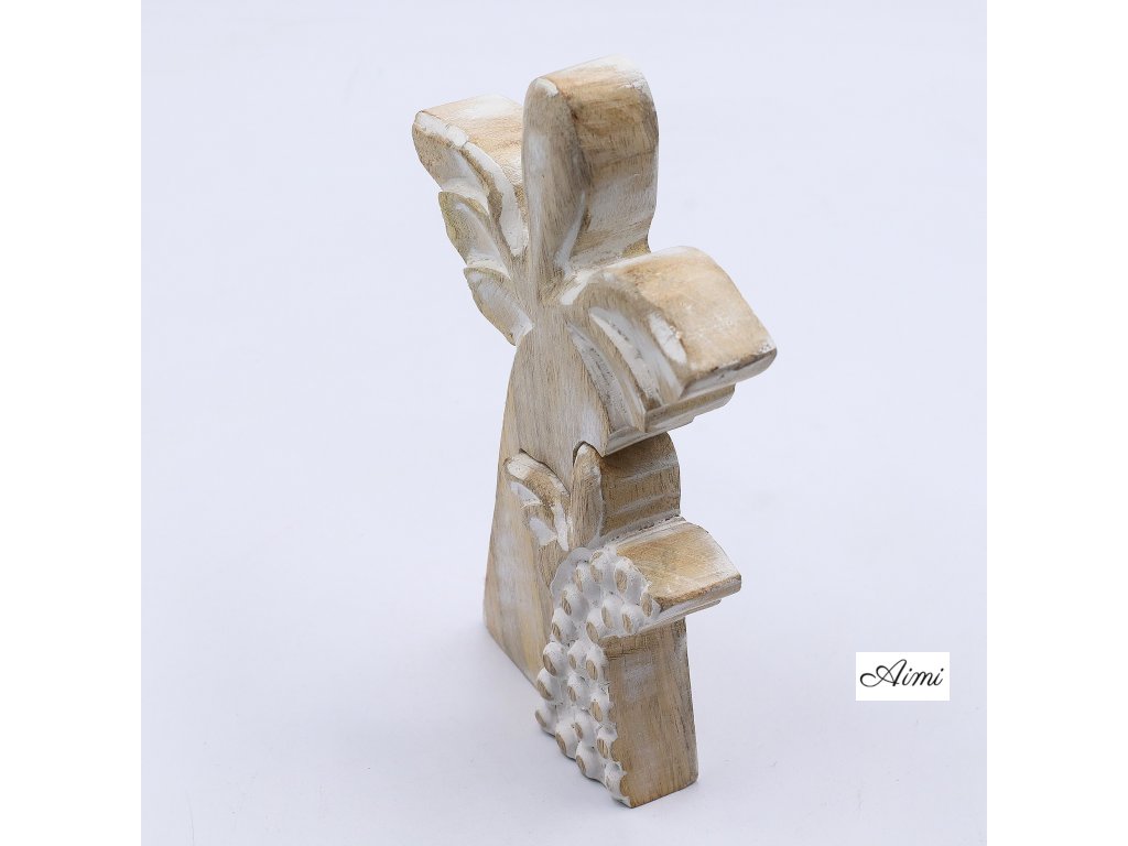 Drevený anjel v anjelovi – bielený efekt, 15 cm