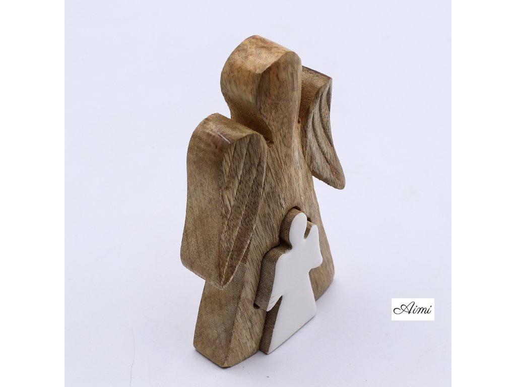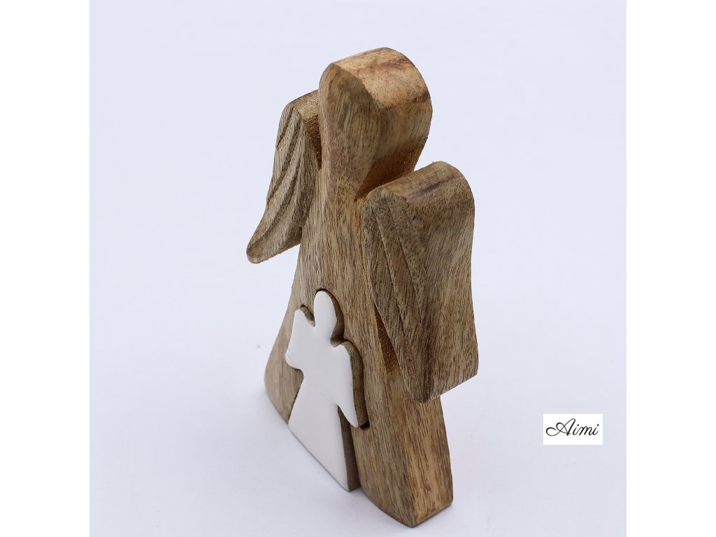 Anjel z Mangového Dreva s Malým Anjelom v Strede - Biely Smalt - 15 cm