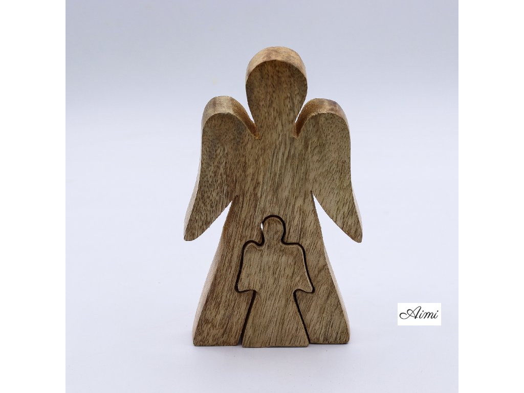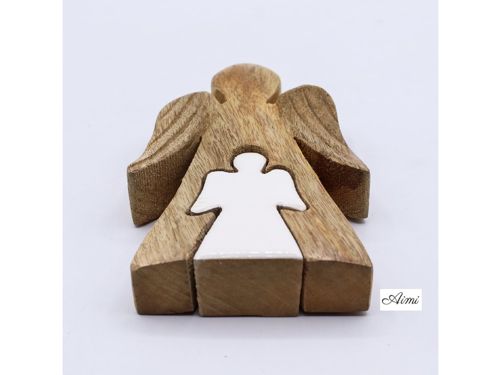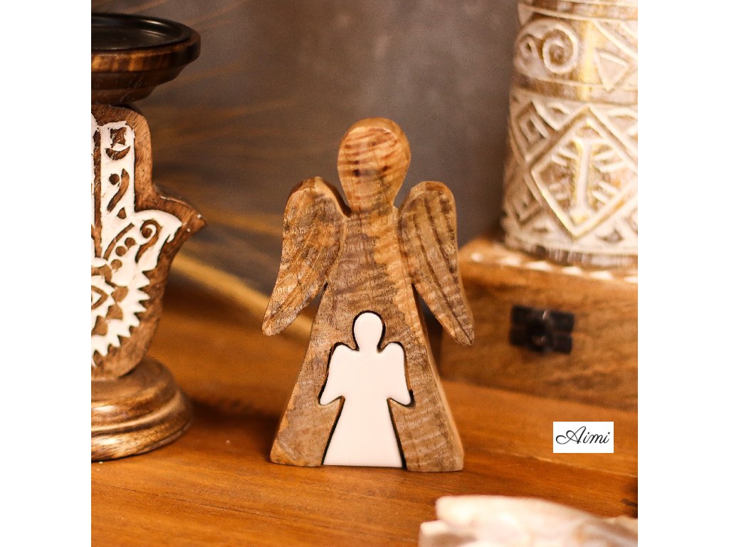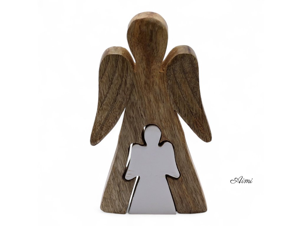 Tento pôsobivý anjel z mangového dreva s výškou 15 cm zaujme originálnym dizajnom „anjel v anjelovi“, ktorý spája nadčasovú symboliku s moderným spracovaním. Je ručne vyrezávaný v Indii z udržateľného mangového dreva a ošetrený hladkým bielym smaltovaným povrchom, ktorý zvýrazňuje jeho elegantnú siluetu. Každý kus je férovo obchodovaný a individuálne vyhotovený s dôrazom na kvalitu.