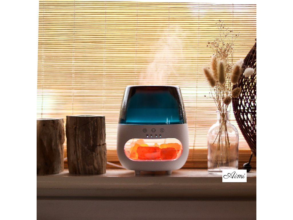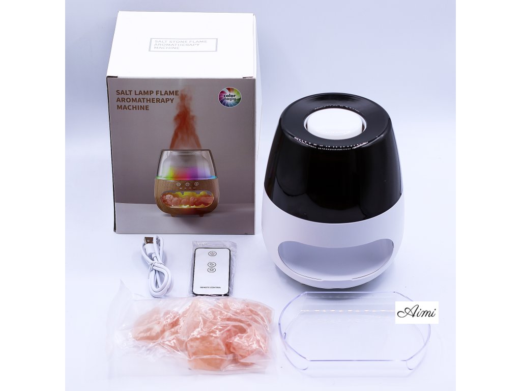 Aroma Difuzér s Himalájskou Soľou a Efektom Plameňa – Biely USB – Meniace Farby a Časovač