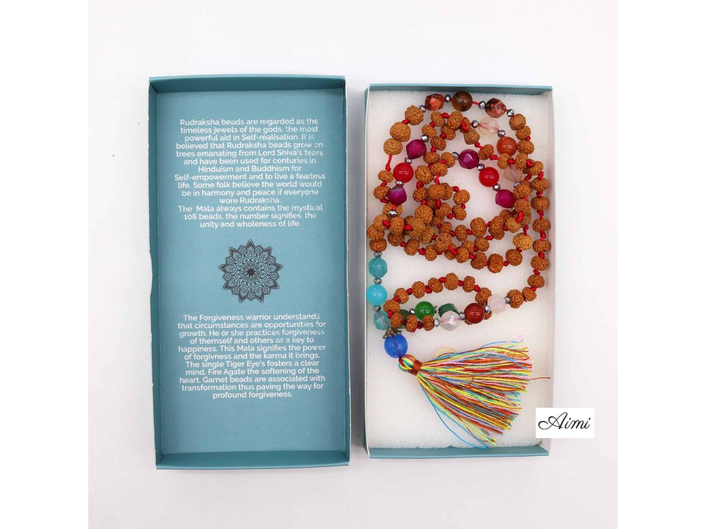 Bojovník odpustenia chápe, že okolnosti sú príležitosťou na rast. Praktizuje odpustenie sebe a druhým ako kľúč k šťastiu. Táto Mala znamená silu odpustenia a karmu, ktorú prináša. Singel Tigrie oko podporuje čistú myseľ. Ohnivý achát obmäkčenie srdca. Granátové korálky sú spojené s premenou, čím sa otvára cesta k hlbokému odpusteniu.