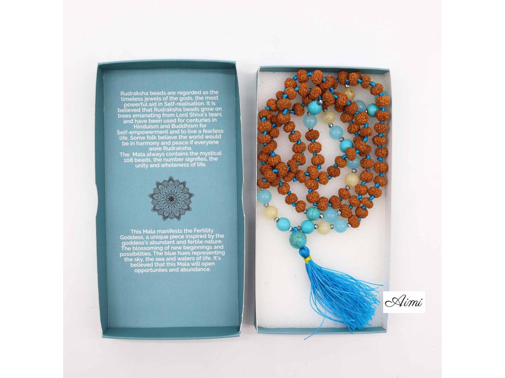 Plodnosť a hojnosť Mala predstavuje bohyňu plodnosti, jedinečný kúsok inšpirovaný bohyňou bohatou a úrodnou povahou. Rozkvet nových začiatkov a možností. Modré odtiene predstavujú oblohu, more a vody života. Verí sa, že táto Mala otvorí príležitosti a hojnosť.
