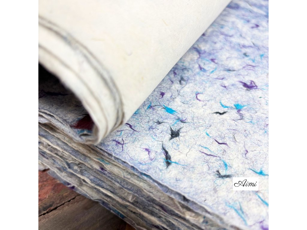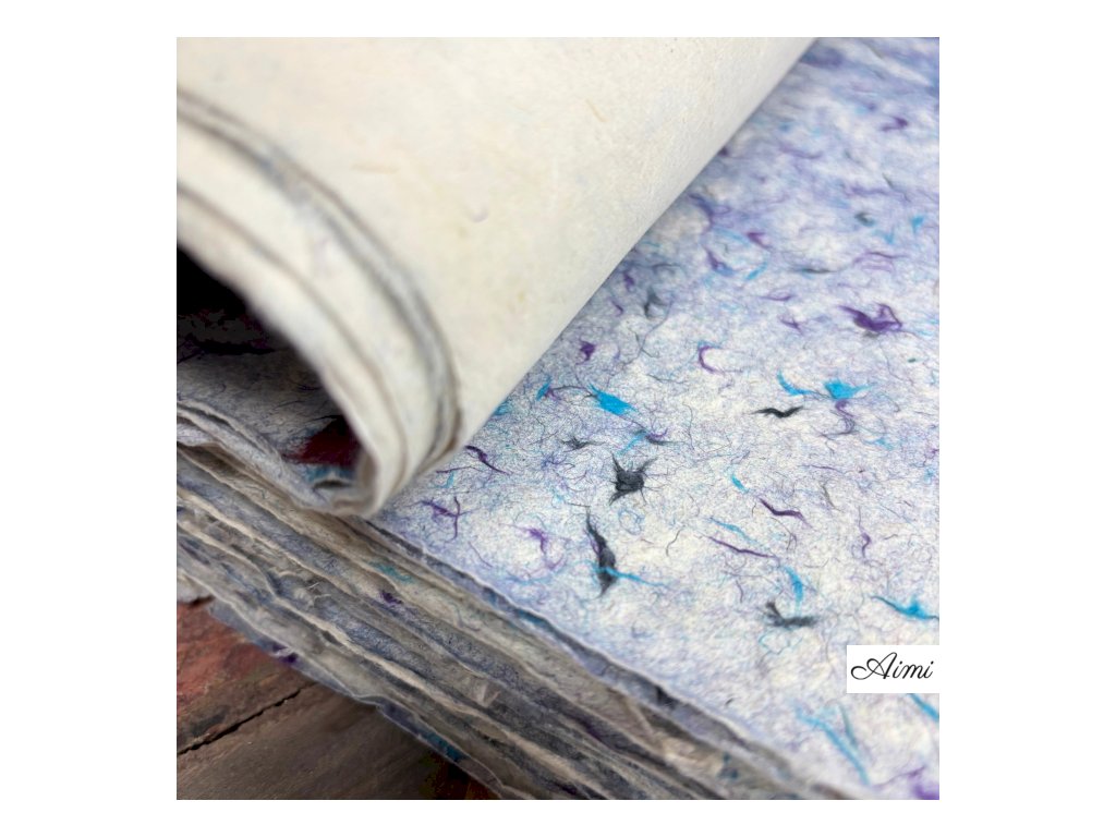 Ručne vyrábaný v Nepále z udržateľne získavanej kôry kríka Daphne, tento papier je obohatený o jemné zelené bavlnené vlákna, ktoré mu dodávajú decentný botanický vzhľad. Každý hárok je sušený na slnku a nesie jedinečné textúry, ktoré odrážajú majstrovstvo himalájskych remeselníkov.