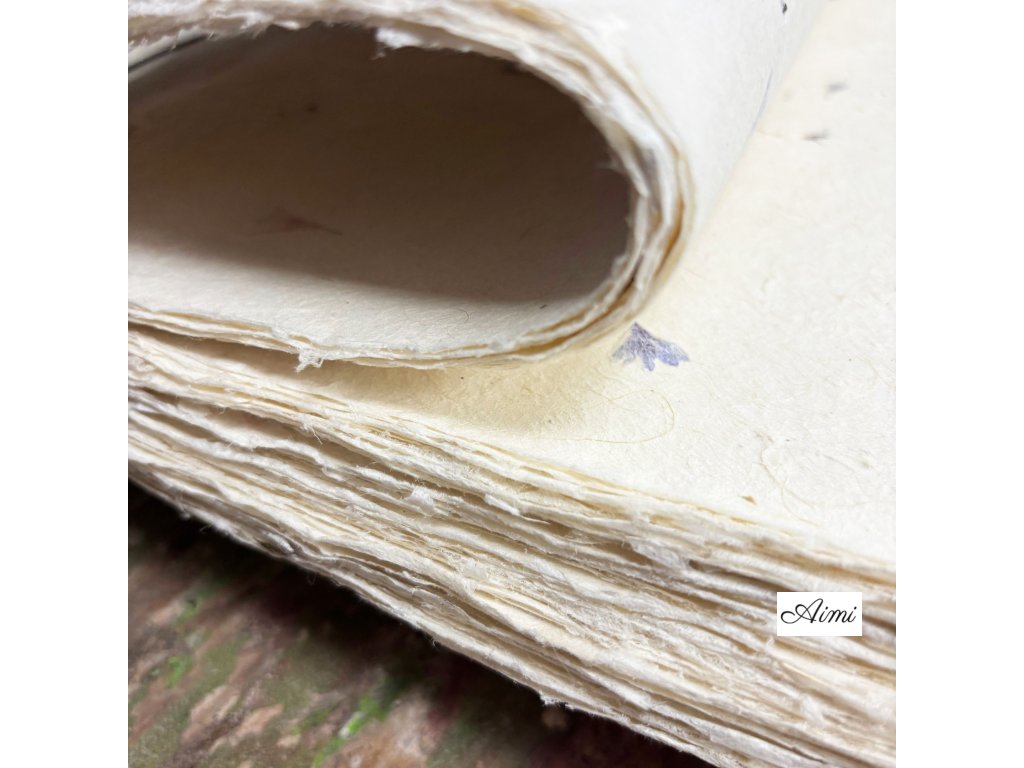 Ručne vyrábaný v Nepále z udržateľne získavanej kôry kríka Daphne, tento papier je obohatený o jemné zelené bavlnené vlákna, ktoré mu dodávajú decentný botanický vzhľad. Každý hárok je sušený na slnku a nesie jedinečné textúry, ktoré odrážajú majstrovstvo himalájskych remeselníkov.