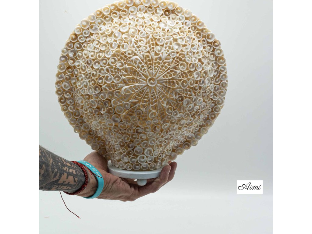 Boho Morská Mušľová Lampa - Veľká Vzorovaná Okrúhla - 30 cm