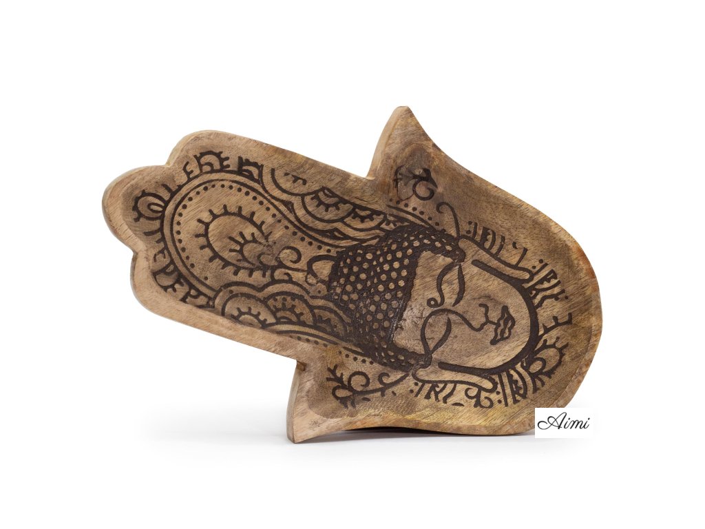 Dlhá Tácka 30x20.5x2.5cm - Tvar Hamsa s Čiernym Gravírovaním Budhu