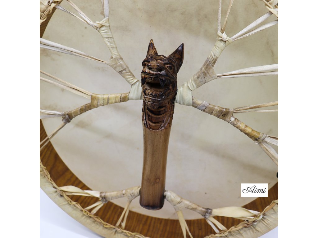 To, čo tento bubon odlišuje, je detailne ručne vyrezávaná rukoväť v tvare dračej hlavy na zadnej strane. Drak, nadčasový symbol premeny, sily a duchovnej moci, dodáva bubnu výrazný vizuálny efekt a hlboký význam. Precízna rezba povyšuje bubon zo samotného hudobného nástroja na prémiový stredobod pozornosti, ktorý osloví hudobníkov, duchovných praktikantov aj zberateľov.