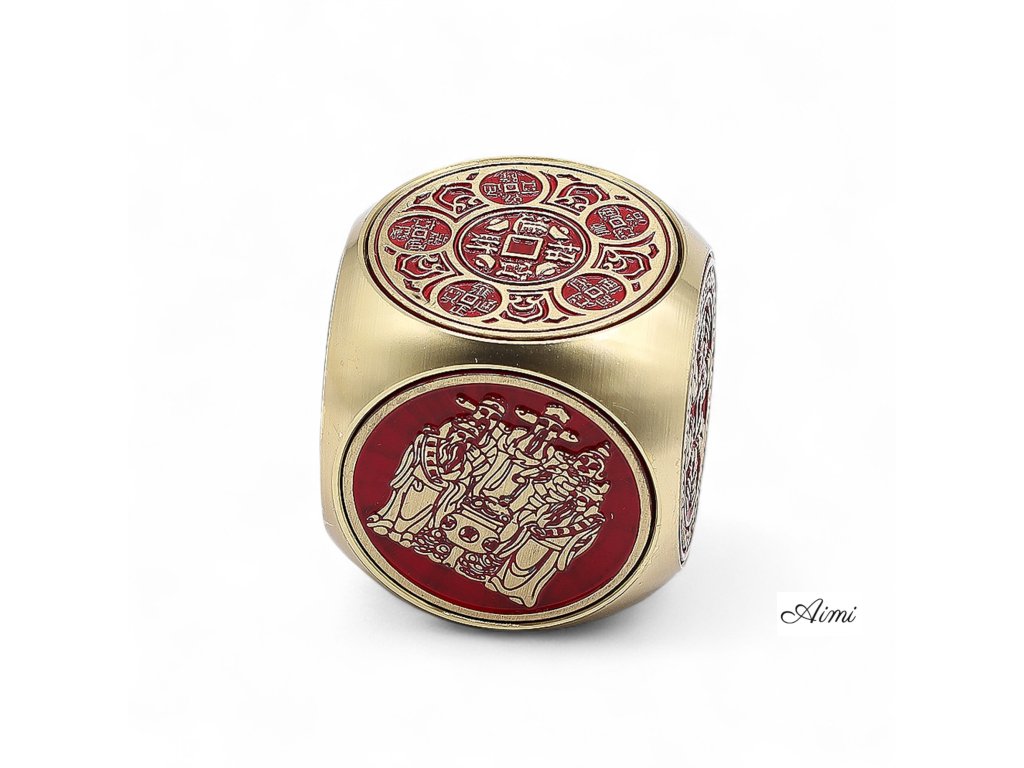 Feng Shui Šťastie - Červená a Mosadzná Kocka Prosperity - Plochá