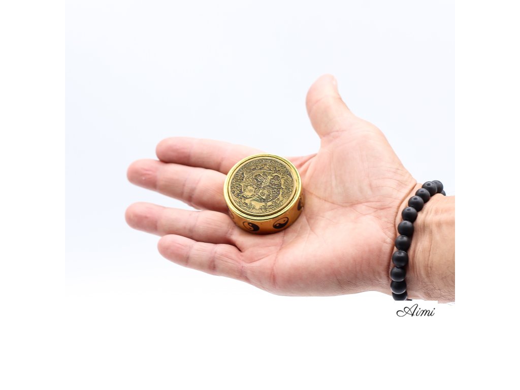 Precízne vyrobený z kvalitnej mosadze a bohato zdobený, slúži zároveň ako dekoratívny aj duchovný predmet. Možno ho umiestniť do domácností, kancelárií či posvätných priestorov, kde prináša pozitívny tok energie a ochranu. V rozmere 2 × 4,5 cm stelesňuje rovnováhu a plynutie prírodných síl, odrážajúc cieľ Feng Shui – vytvoriť pokoj, jasnosť a hojnosť.