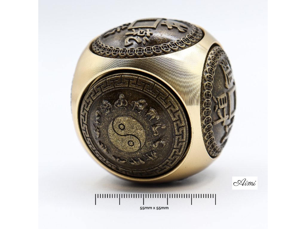 Feng Shui Šťastie – Veľká kocka bohatstva – Okrúhla je precízne spracovaný mosadzný predmet navrhnutý na prilákanie prosperity, hojnosti a šťastia. Svojimi hladko zaoblenými hranami a jemnými detailmi nesie bohatú symboliku Feng Shui a stáva sa výrazným i zmysluplným doplnkom každého priestoru.
