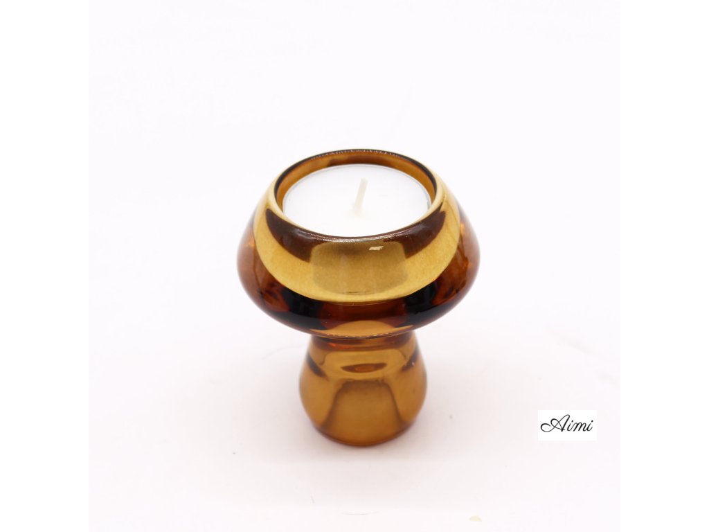 Hríbový Otočný Svietnik na Čajovú a Stolovú Sviečku - Starožitný Jantár