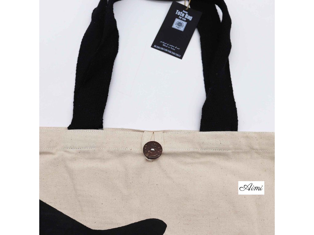 Ikonická Základná Taška – Čierna Mačka – Prírodná 10 oz (36 x 43 x 10 cm)