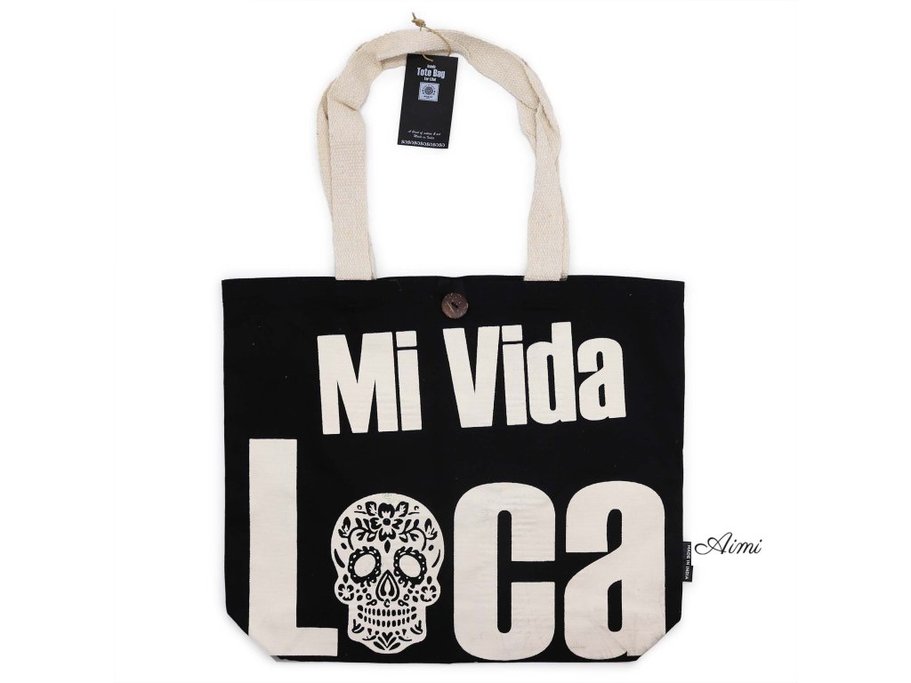 Ikonická Základná Taška – Mi Vida Loca – Čierna Prírodná 10 oz (36 x 43 x 10 cm)