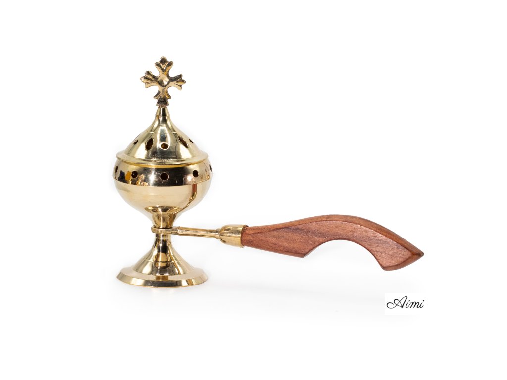 Táto kadidelnica s detailne vyrezávaným krížom na veku je ideálna do kostolov alebo obchodov s náboženskými potrebami. Drevená rukoväť zaisťuje pohodlné používanie, aj keď je horák horúci.
