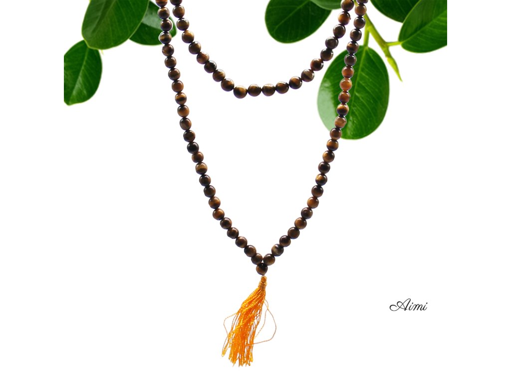 Predstavujeme Korálky Mala - Tigrie oko, úžasný a posilňujúci šperk pripravený na posilnenie vašej vnútornej sily a sebavedomia. Táto mala je ručne vyrobená zo 108 guľôčok prírodného Tigrieho oka, drahokamu, ktorý sa vyznačuje podmanivými hnedými a zlatými odtieňmi a je známy svojou pozoruhodnou schopnosťou kultivovať odvahu, sebaistotu a vnútornú odolnosť. Táto mala, hlboko zakorenená v tradícii, slúži ako kľúčový nástroj v duchovných praktikách, ako je meditácia a spievanie, pričom korálky Tigrieho oka uľahčujú uzemnenie, rovnováhu a ochranu. Navyše bez námahy prechádza do štýlového doplnku, ktorý do každého kompletu vnáša štipku smelosti a sebavedomia.