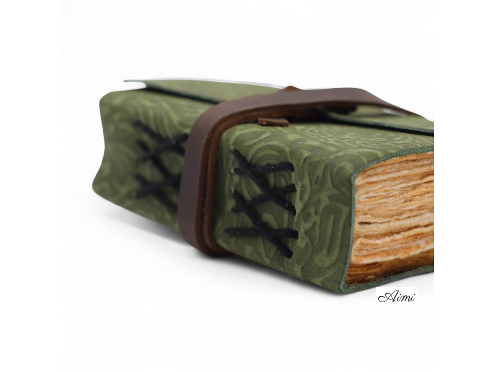 Kožené Zápisníky s Hrubým Okrajom (5x3,5") - Vzor Zeleného Bludiska