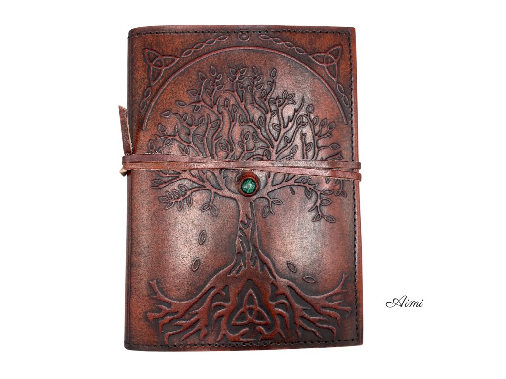 Tento štýlový a praktický zápisník má kožený obal s krásnym dizajnom Strom Života.