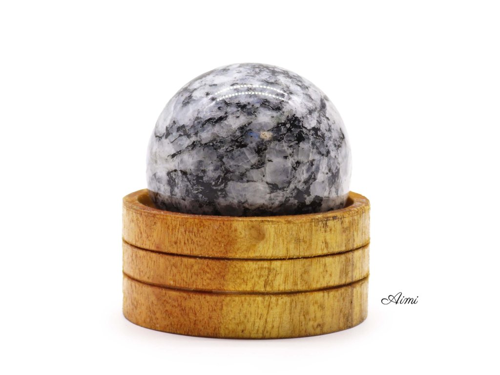Krištáľová Guľa z Drahokamu 50mm - Indický Mesačný Kameň so Stojanom
