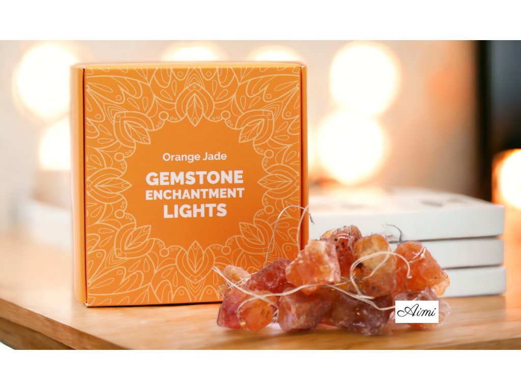 LED Svetelná Reťaz s Drahými Kameňmi - Oranžový Nefrit