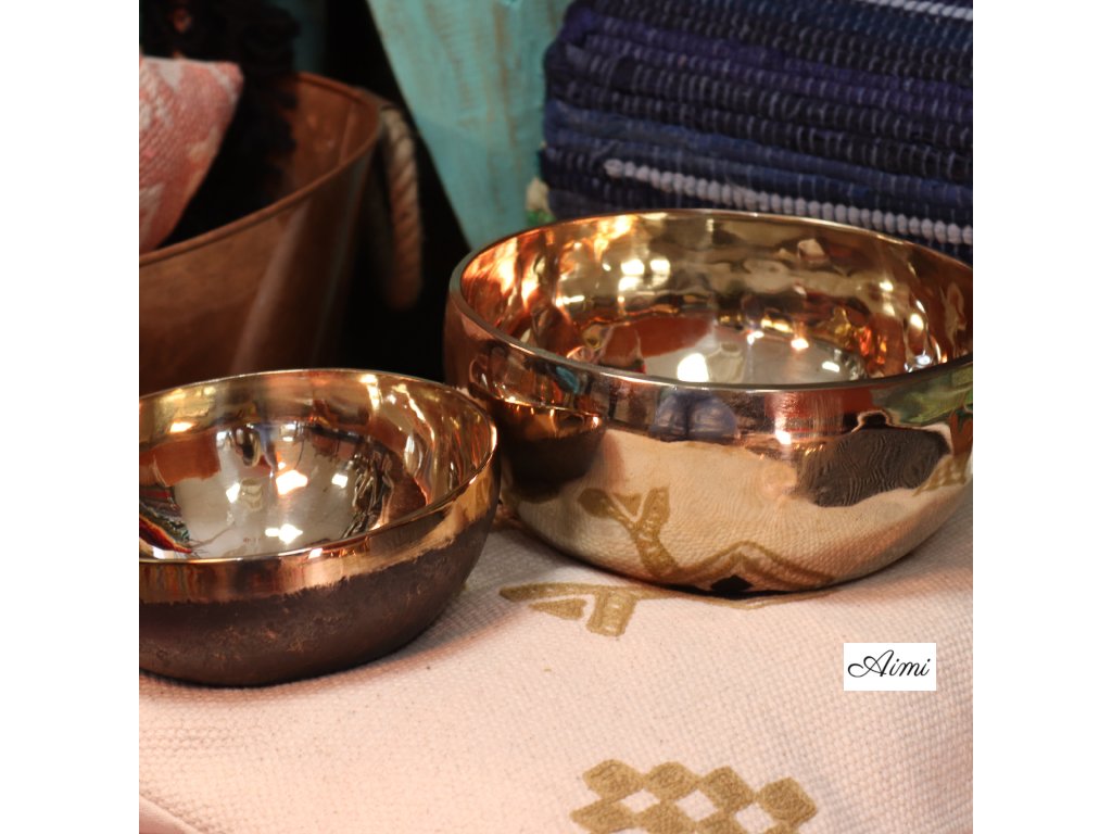 Stredne veľká misa so žiarivou zlatou povrchovou úpravou, ideálna na zvukové kúpele a praktiky všímavosti. Vyznačuje sa jasnou rezonanciou a silným zvukom, vďaka čomu je vhodná na individuálne aj skupinové použitie.