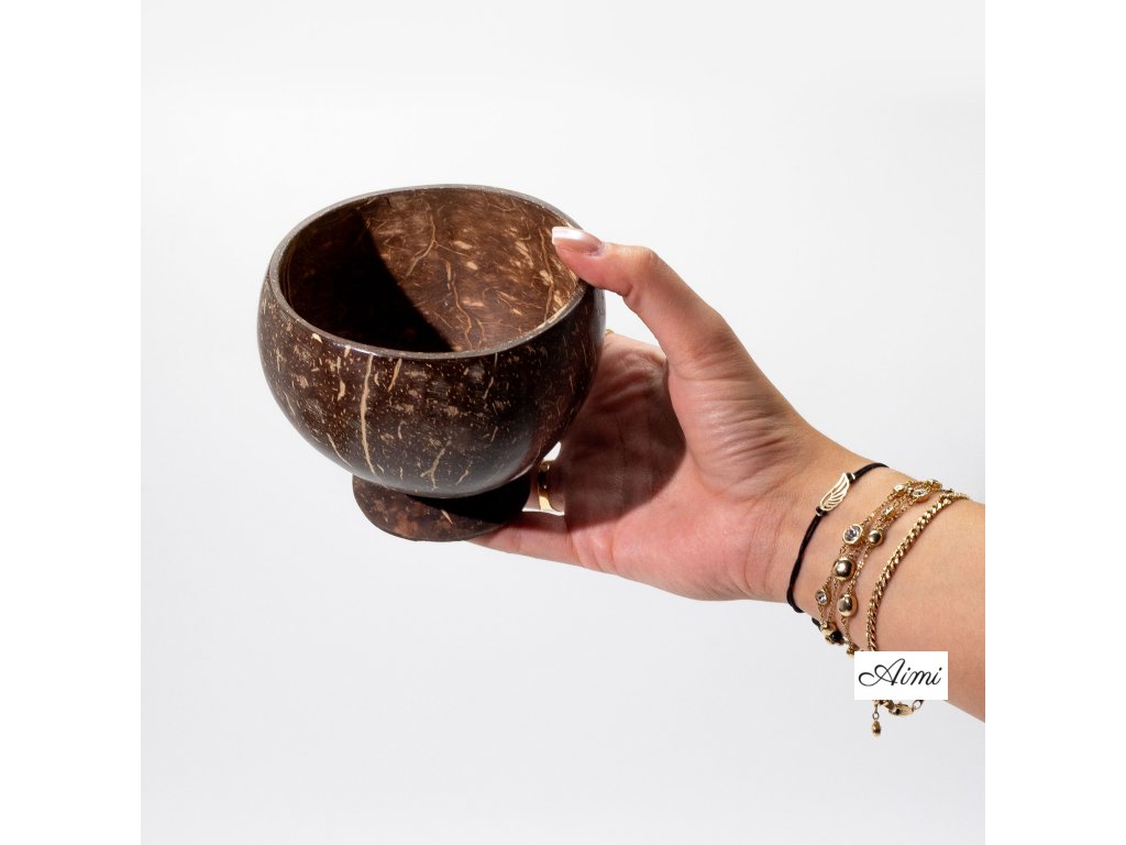 Malá Prírodná Kokosová Miska - Leštená - na Remeselné Použitie - 9x10cm na Stojane