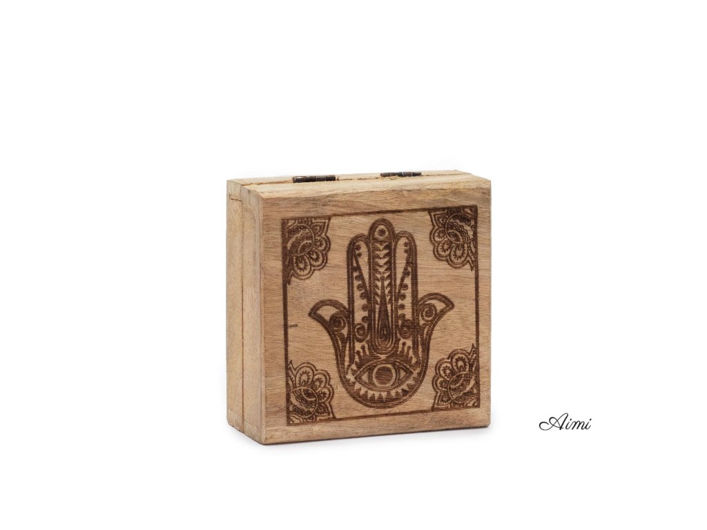 Malá Štvorcová Krabička 10x10x4,2cm - Hamsa Čierne Gravírovanie
