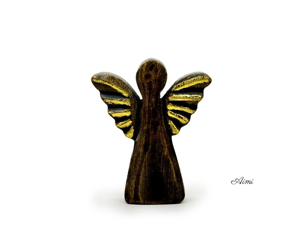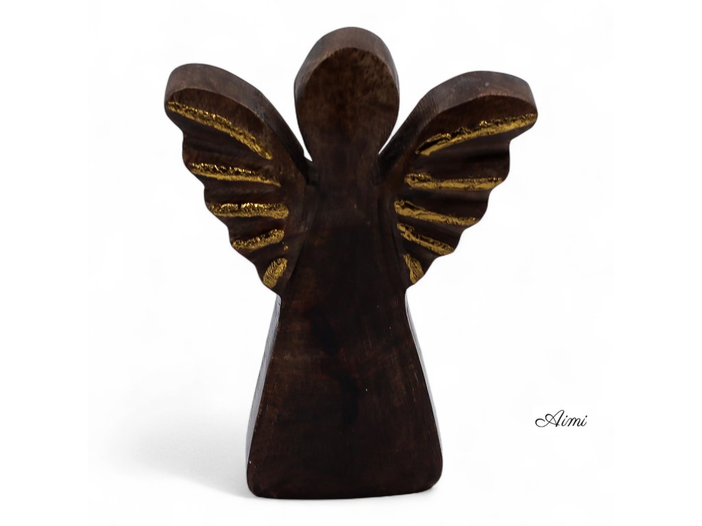 Malý Anjel z Mangového Dreva - Zlatý Dekor - 12cm