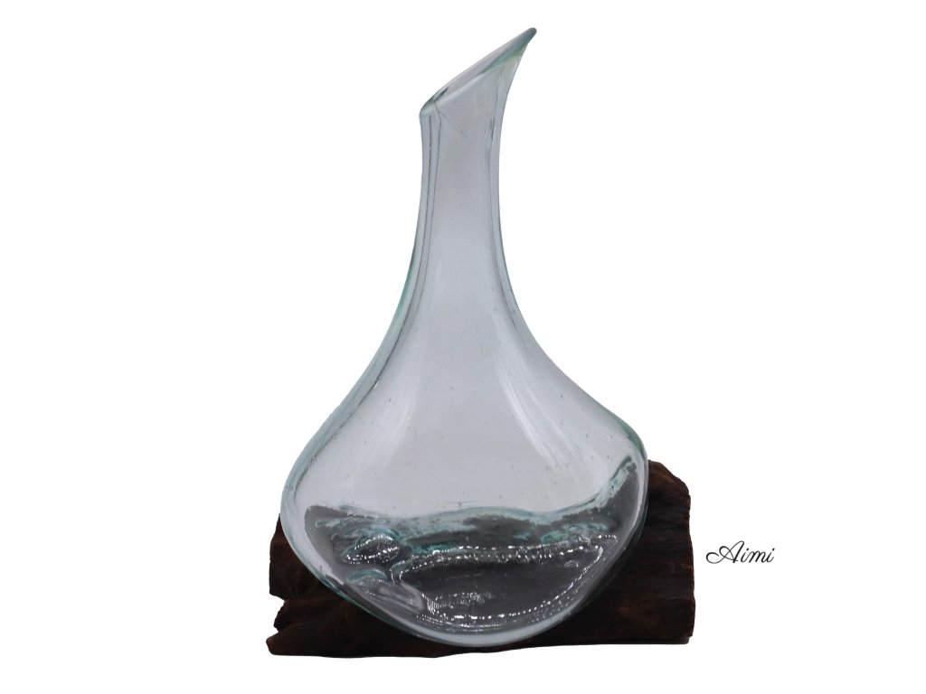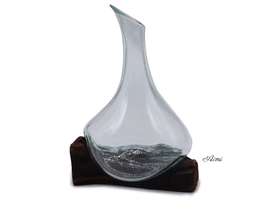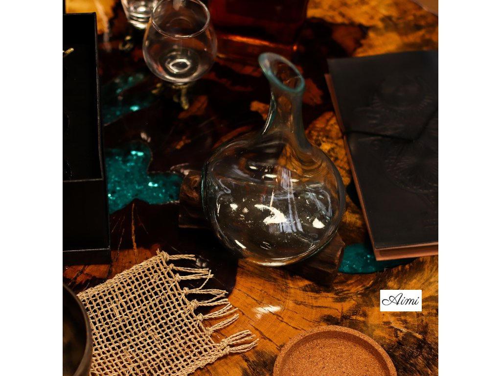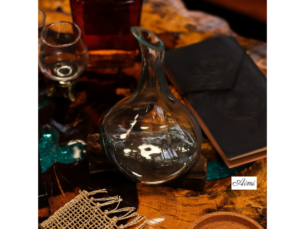 Ručne vyrobená na Bali z recyklovaného skla a znovuzískaného dreva, každá karafa nesie jedinečný tvar vytvorený kombináciou prírodných línií a remeselnej zručnosti. Tavené sklo sa rozlieva po drevenom podstavci a vytvára originálne spojenie, ktoré nemožno zopakovať.