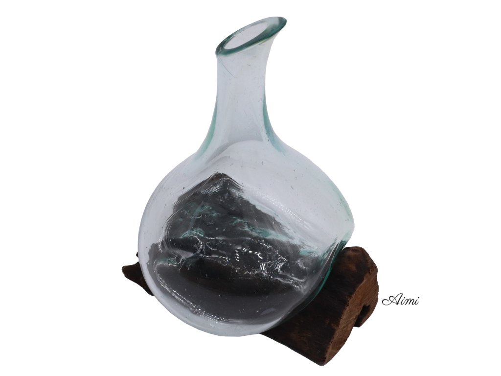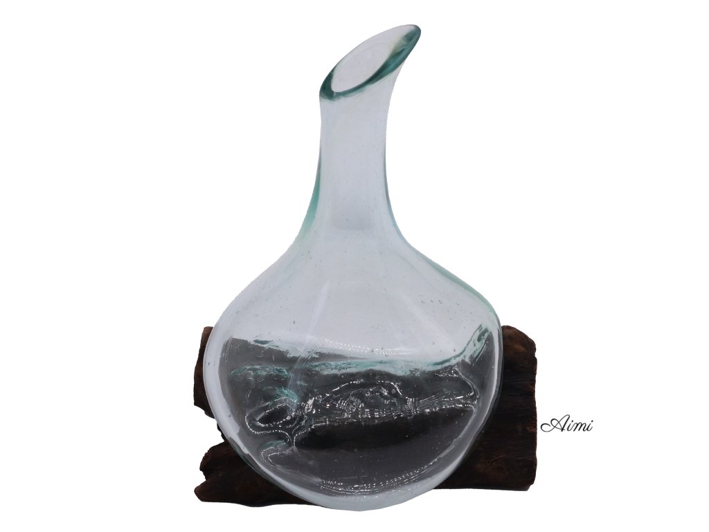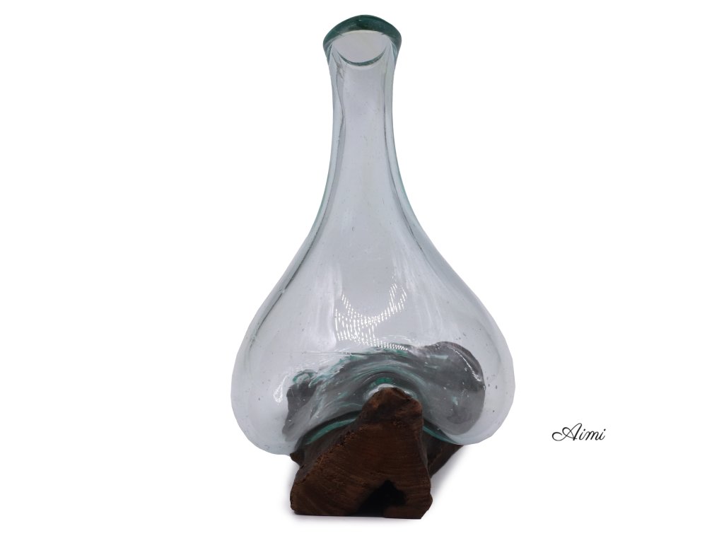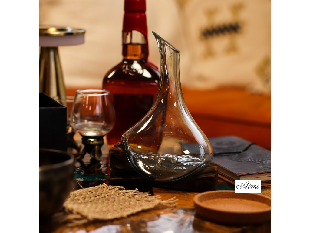 Ručne vyrobená na Bali z recyklovaného skla a znovuzískaného dreva, každá karafa nesie jedinečný tvar vytvorený kombináciou prírodných línií a remeselnej zručnosti. Tavené sklo sa rozlieva po drevenom podstavci a vytvára originálne spojenie, ktoré nemožno zopakovať.