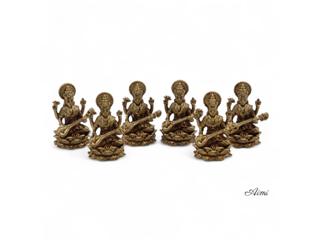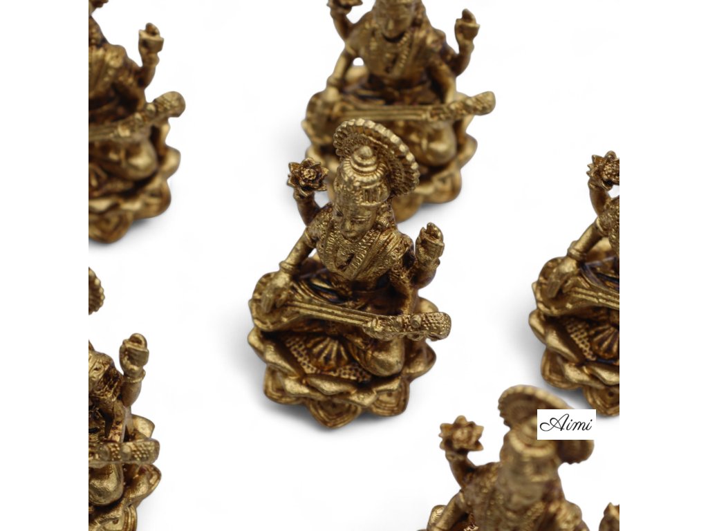 Miniatúrna Mosadzná Soška Bohyne Saraswati (22 g) – 34 mm