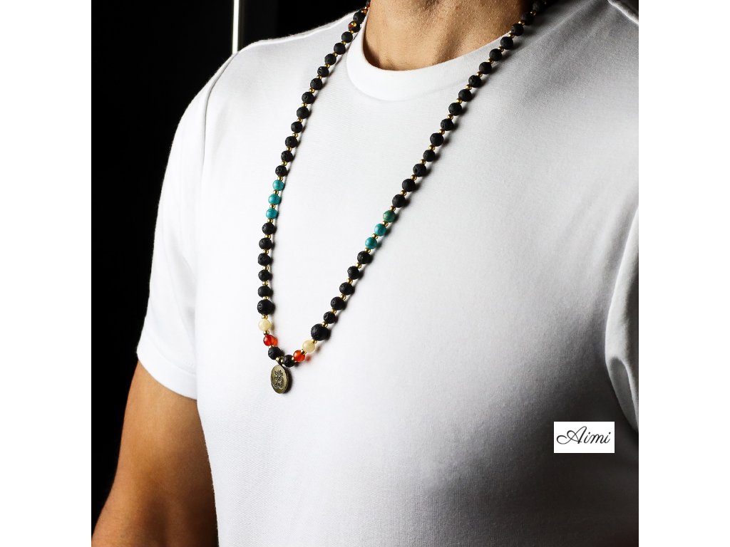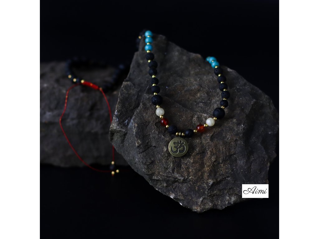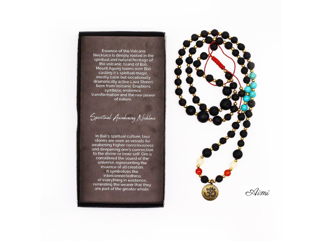 Náhrdelník Esencia Sopky - Duchovné Prebudenie spája uzemňujúcu energiu prírodného lávového kameňa s výraznými akcentovými korálikmi a centrálnym príveskom Om, ktorý symbolizuje duchovný rast, vyššie vedomie a prebudenie vnútorného potenciálu. Pôsobivý vzhľad a bohatá symbolika robia z tohto náhrdelníka zmysluplný darček pre osobné cesty aj výnimočné príležitosti.