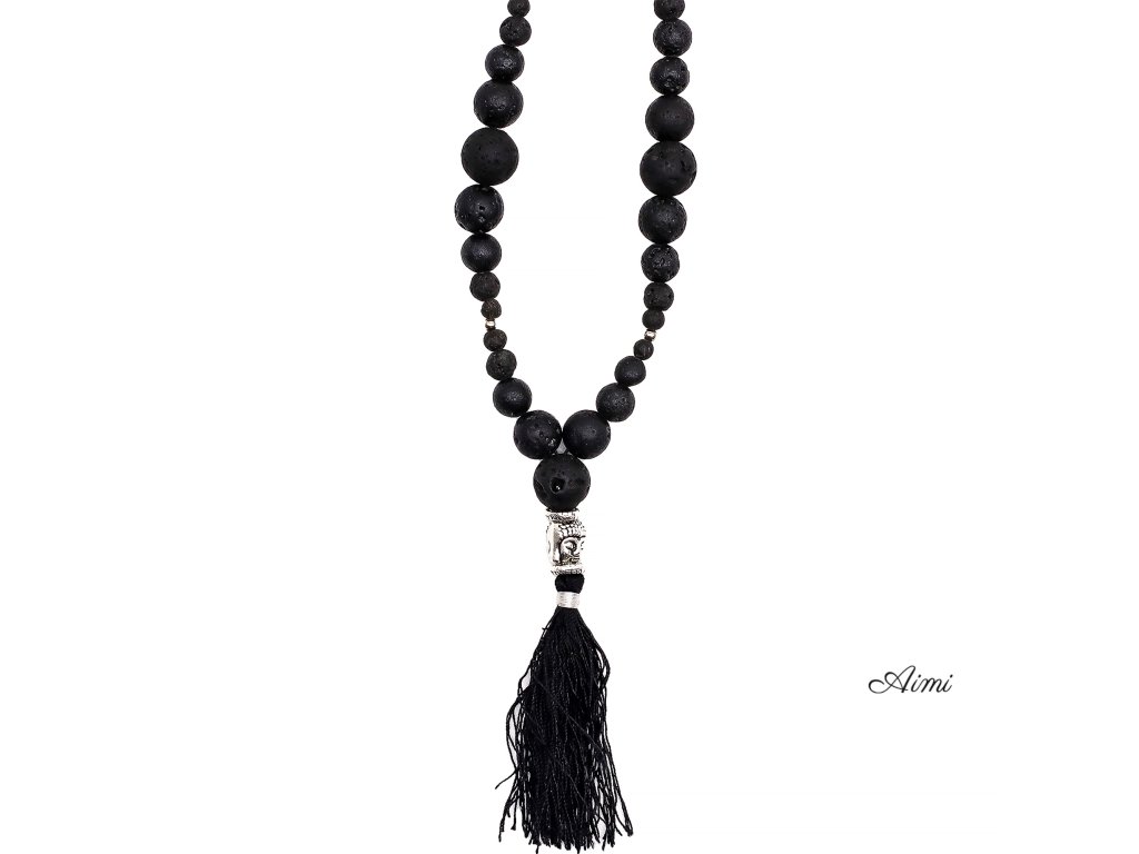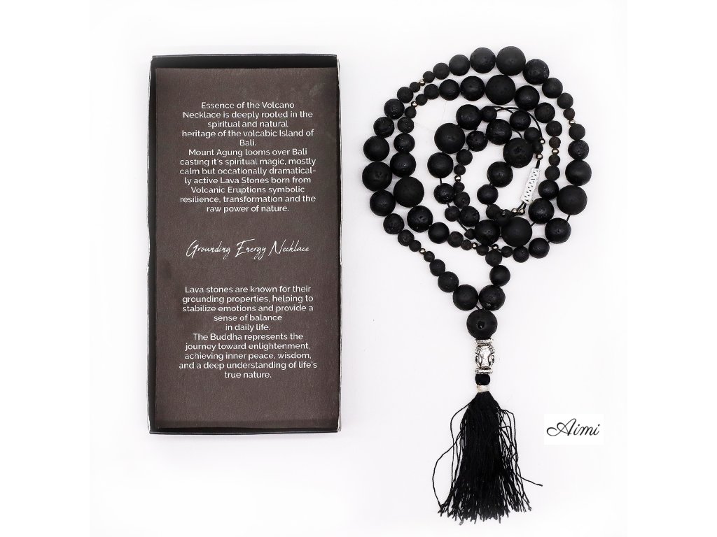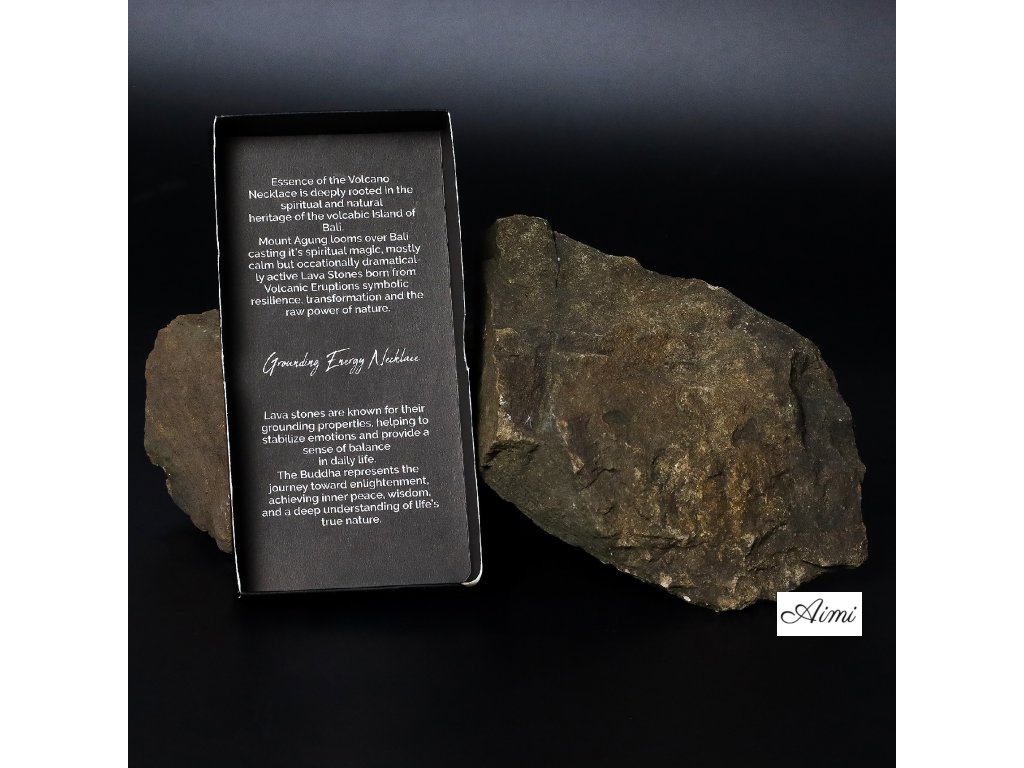 Ručne vyrobený na Bali z prírodného lávového kameňa, náhrdelník Esencia Sopky - Uzemňujúca Energia Grounding Energy spája hlbokú symboliku s výrazným predajným vzhľadom. Lávový kameň je cenený pre svoje silné uzemňujúce účinky, zatiaľ čo strieborný prívesok Buddhu a strapec prinášajú duchovný rozmer, ktorý osloví zákazníkov.