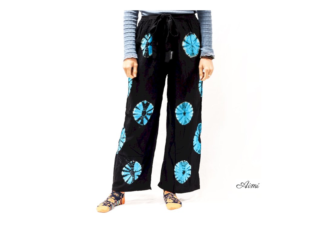 Ručne vyrobené v Indonézii z prémiovej zmesi ľanu a viskózy spájajú tieto Japonské voľnočasové nohavice pohodlie s výrazným dizajnom. Hlboký čierny základ zdobia odvážne modré batikové kruhy a každý pár má jedinečnú remeselnú úpravu, ktorá okamžite upúta pozornosť.