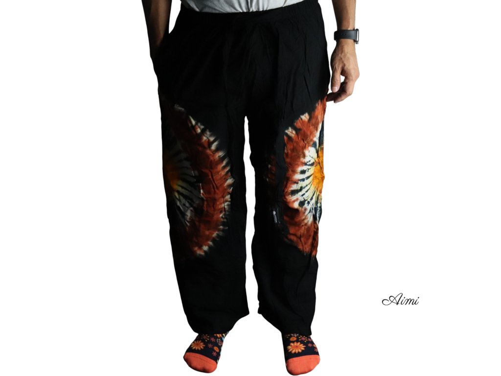 Tieto japonské voľné nohavice v odtieni čiernej čokolády so žiarivými oranžovými akcentmi sú starostlivo ručne vyrobené v Indonézii z priedušnej zmesi ľanu a viskózy. Látka poskytuje mäkký dotyk a prirodzené splývanie, vďaka čomu sú nohavice pohodlné aj štýlové. Široký strih a nastaviteľný sťahovací pás zaručujú uvoľnené nosenie, ktoré lichotí rôznym typom postáv.