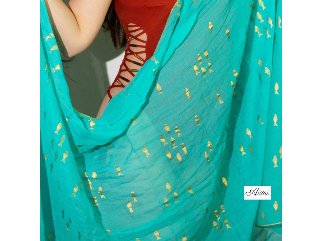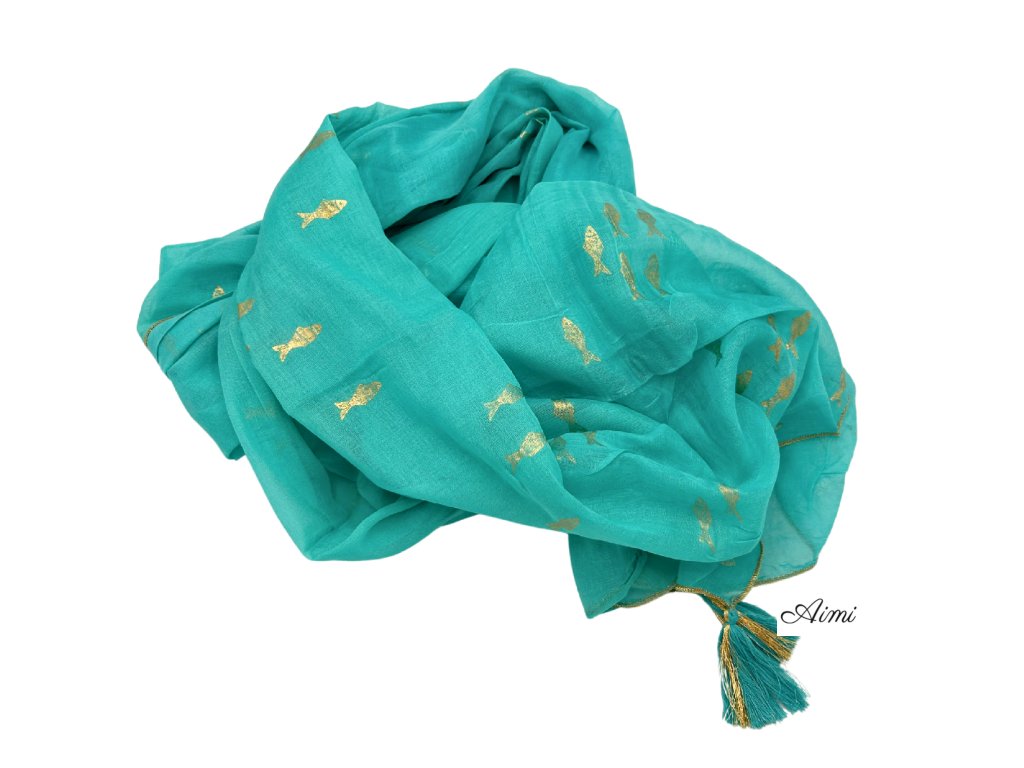 Nomád Pareo - Pareo - Tyrkysová a Zlatá - Design Ryby