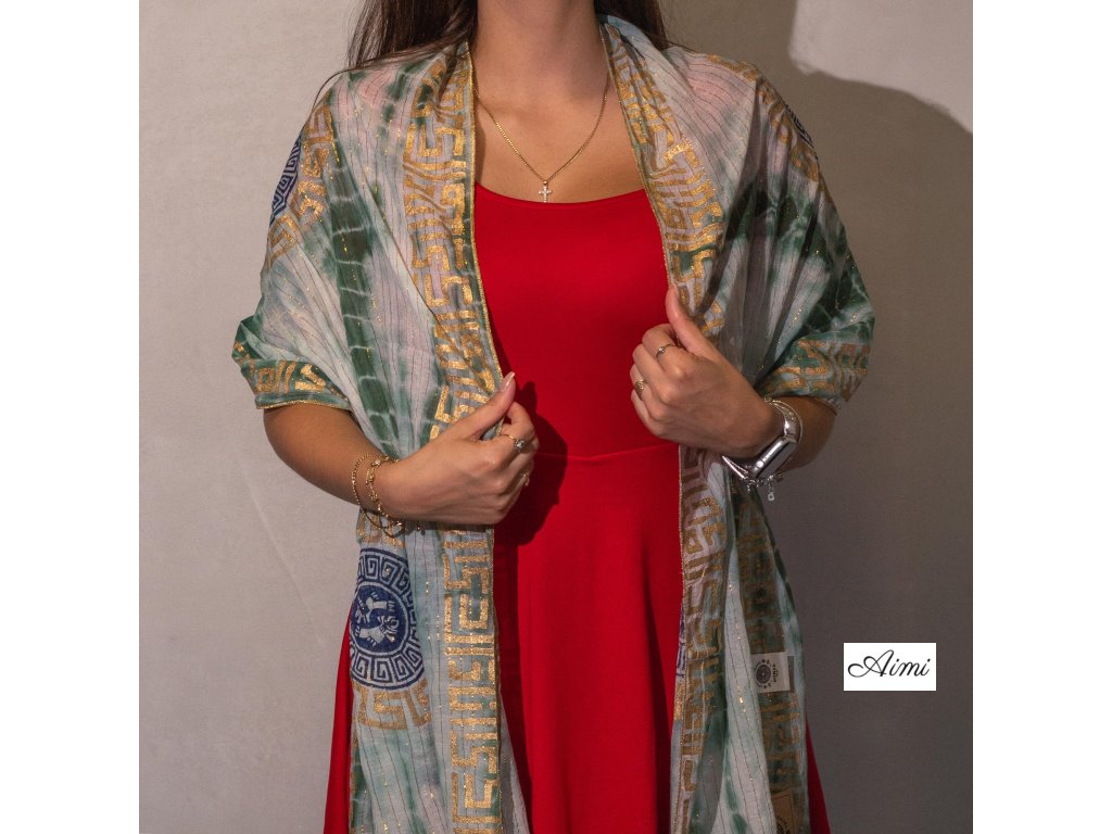 Ručne vyrobený v Indii skúsenými remeselníkmi, každý šál je zhotovený z mäkkej a ľahkej bavlny, ktorá je príjemná na dotyk a chladivá na pokožke, čo ho robí ideálnym na letné nosenie. Bohatý zelený podklad oživuje prepracovaný vzor Marbella, zatiaľ čo trblietavý zlatý detail dodáva nenápadnú eleganciu, ktorá zachytáva svetlo a priťahuje pozornosť bez toho, aby pôsobila rušivo.