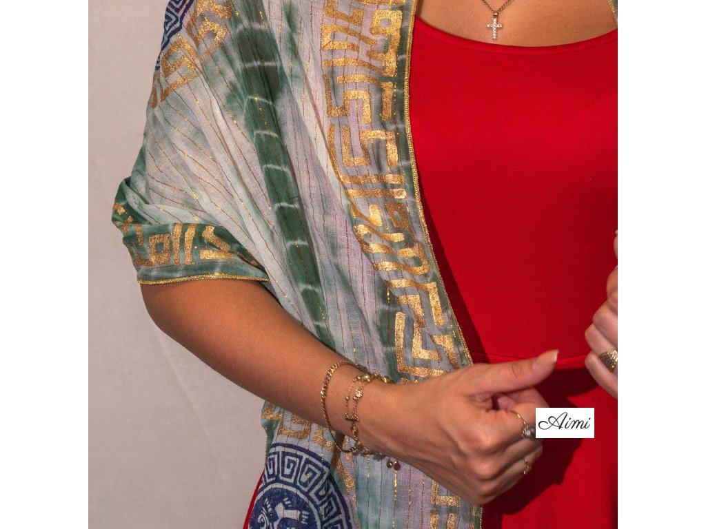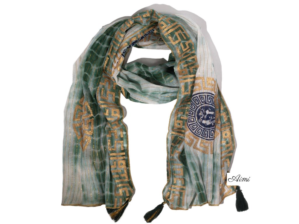 Vneste do svojej letnej kolekcie nádych stredomorského šarmu s týmto šálom s motívom Marbella v osviežujúcich zelených tónoch, ktorý je nádherne zakončený jemným zlatým lemovaním.