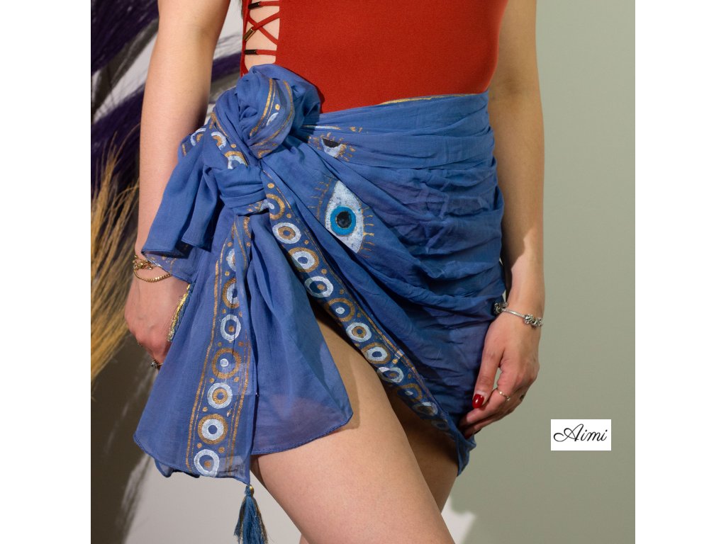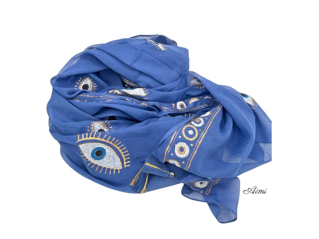 Nomád Sari - Pario - Bohatá Modrá a Zlatá - Ručne Maľované Zlé Oko