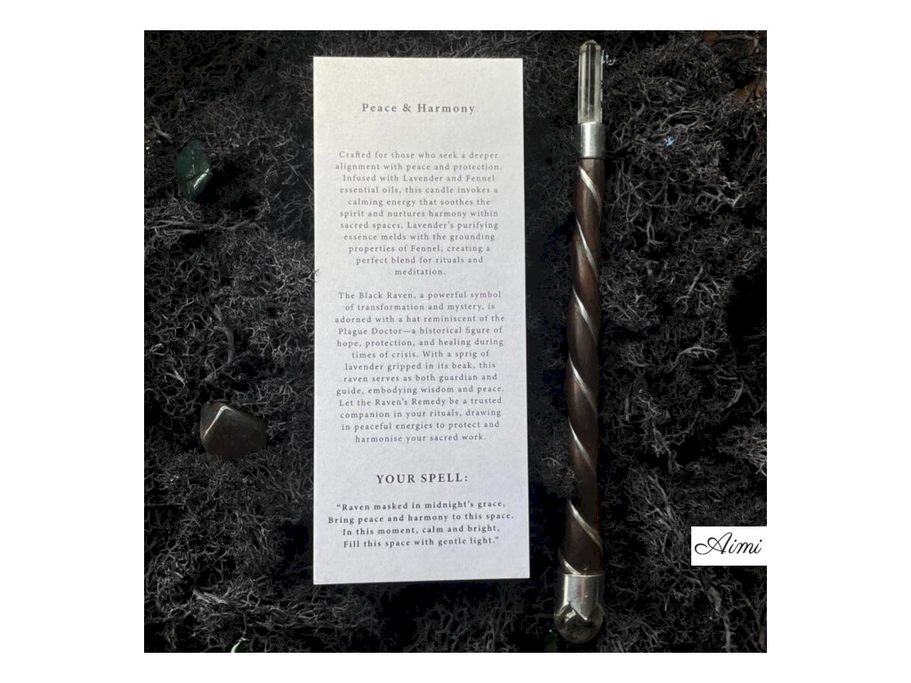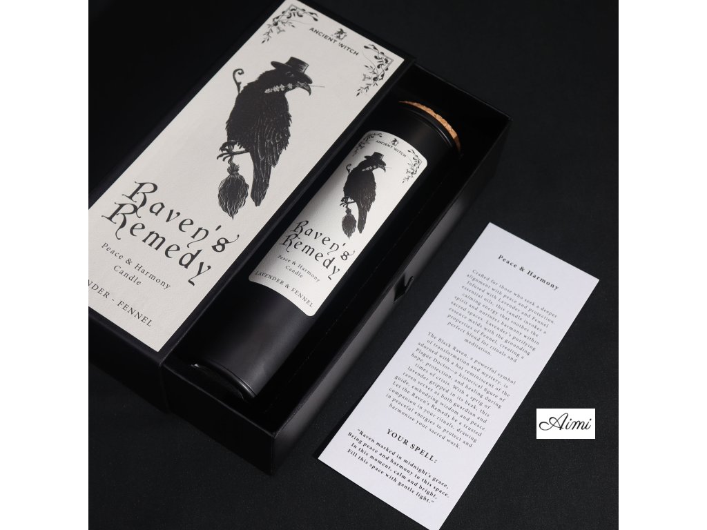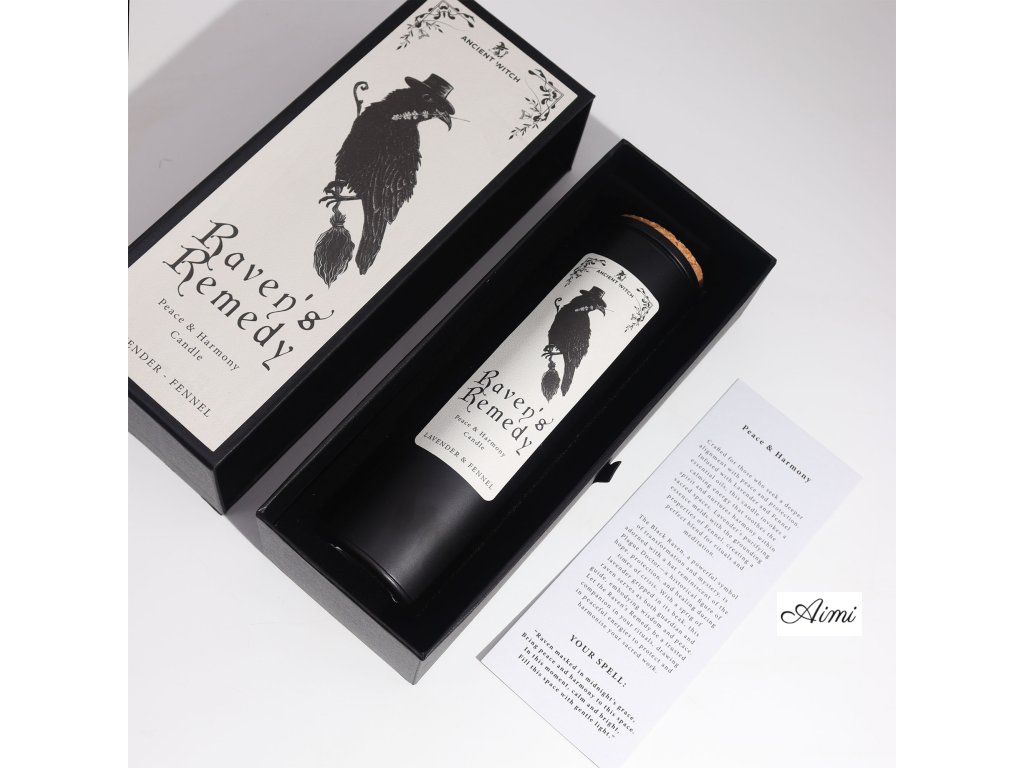 Sviečky sú balené v elegantnej krabičke s dizajnom inšpirovaným symbolikou havranov a starodávnou múdrosťou. Prichádzajú s kartou prejavu s exkluzívnym kúzlom, ktoré vám pomôže nasmerovať zámery a posilniť vaše duchovné praktiky.