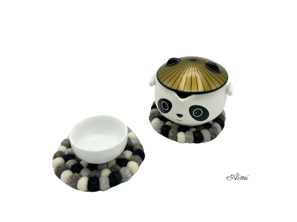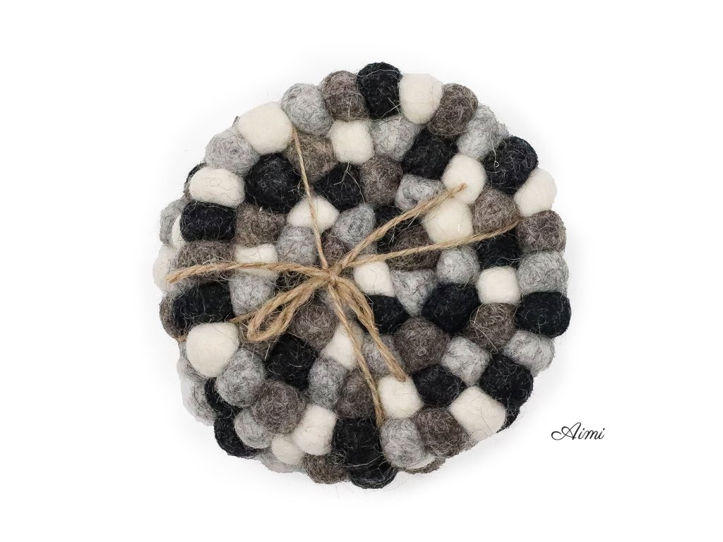 Okrúhle Podložky pod Poháre z Plstených Guľôčok - 10 cm Viacfarebné Sivá Farba (sada 4 kusov)