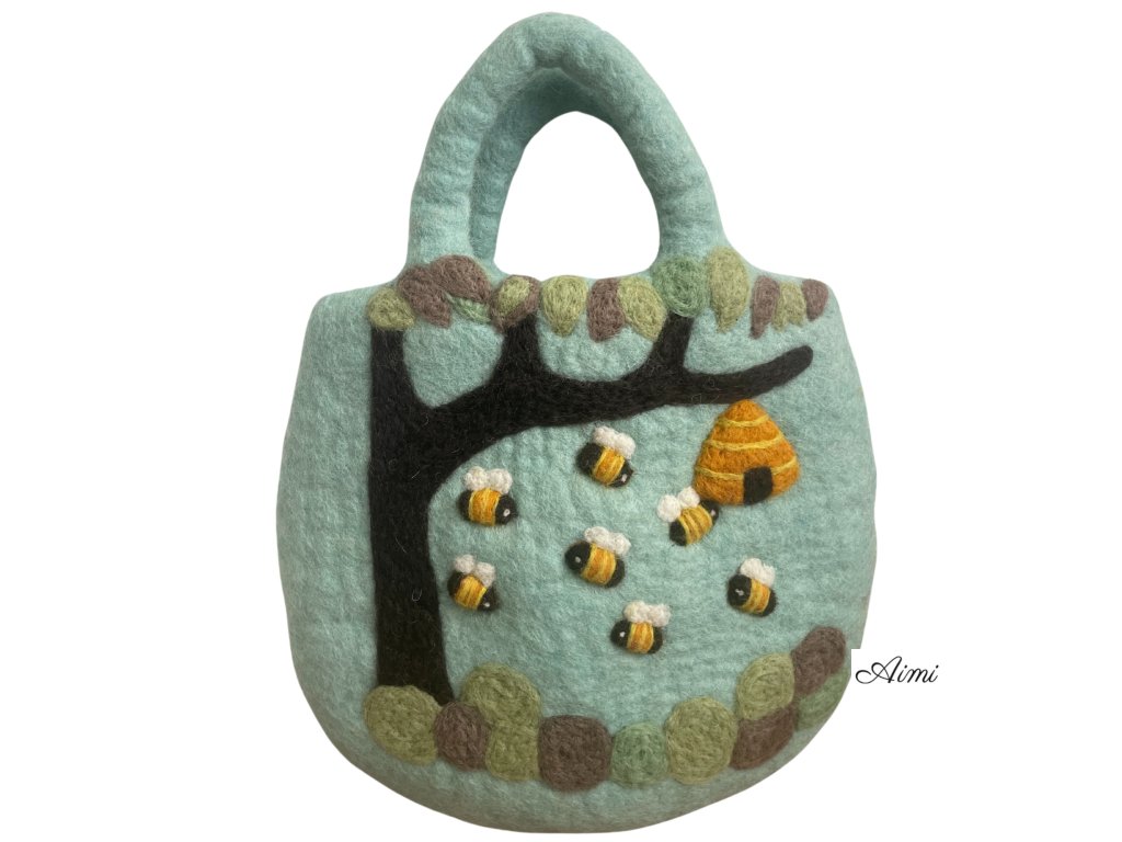 Objavte očarujúcu plstenú tašku Strom a úľ – jedinečný kúsok, ručne vyrobený v Nepále s maximálnou starostlivosťou a dôrazom na remeselnú tradíciu.