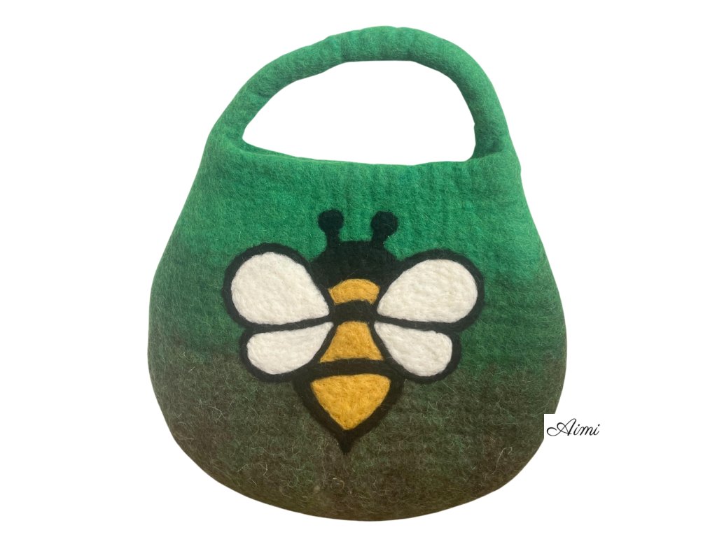 Zaraďte do svojej ponuky krásnu filcovú tašku Včela – vodou plstená, jedinečný kúsok starostlivo ručne vyrobený v Nepále pomocou tradičných techník plstenia.