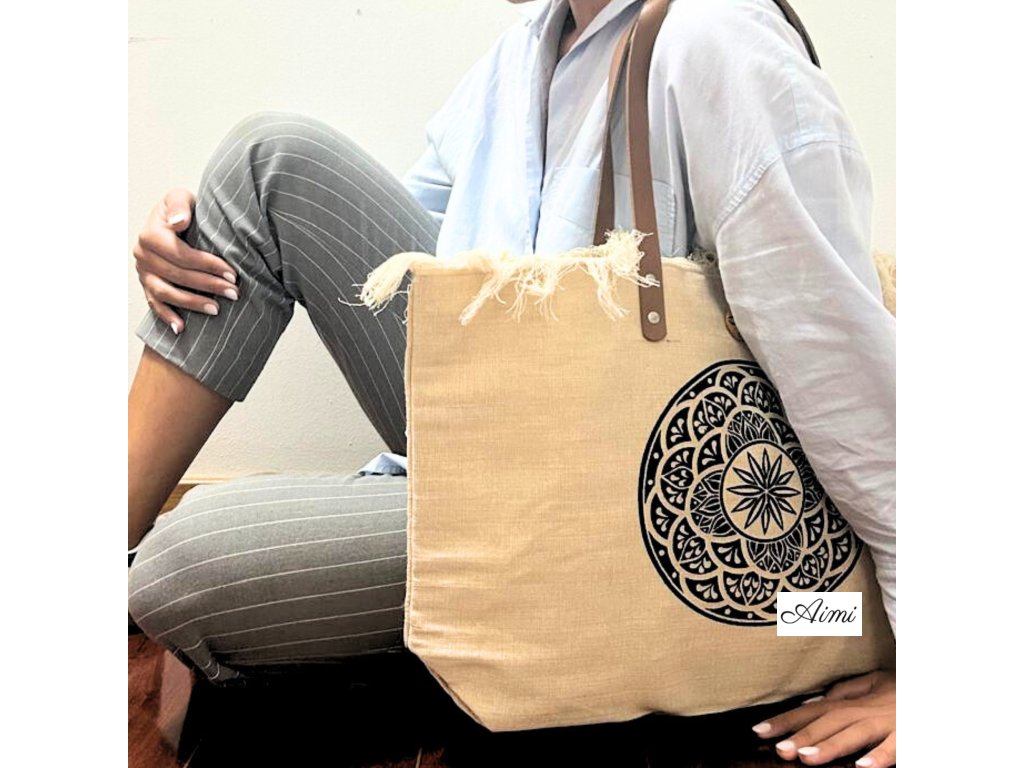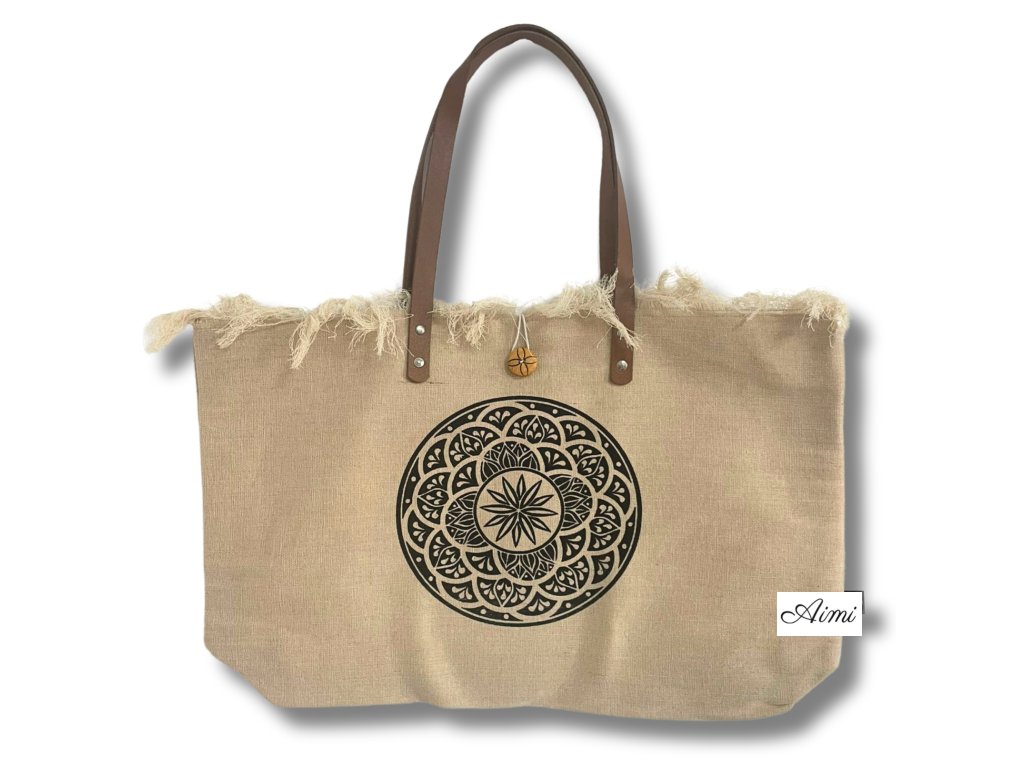 Prírodná Taška s Koženými Rukoväťami - Kvet Života