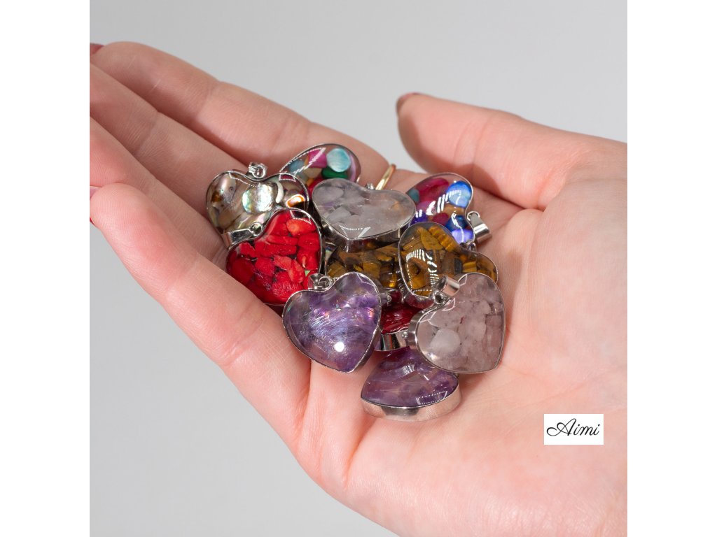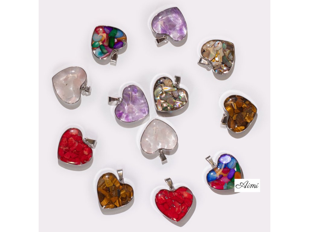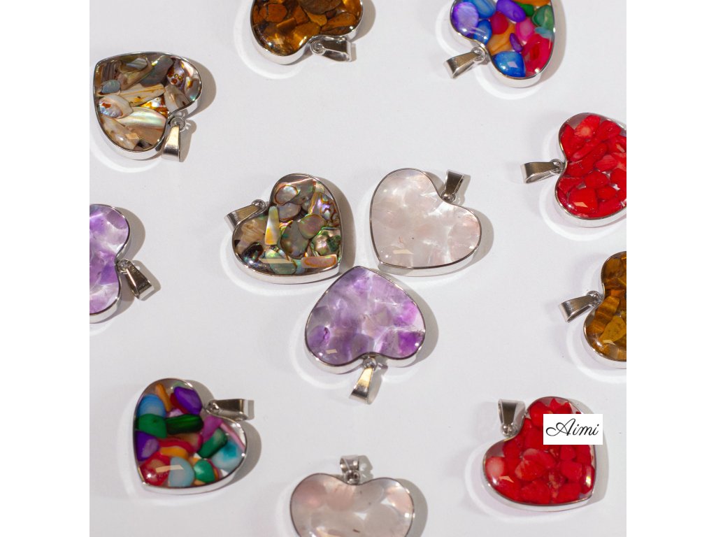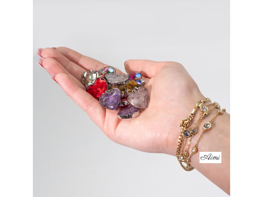 Prívesok s Oceľovým Puzdrom v Tvare Srdca – 12 Rôznych Úlomkov a Mušlí Drahokamov