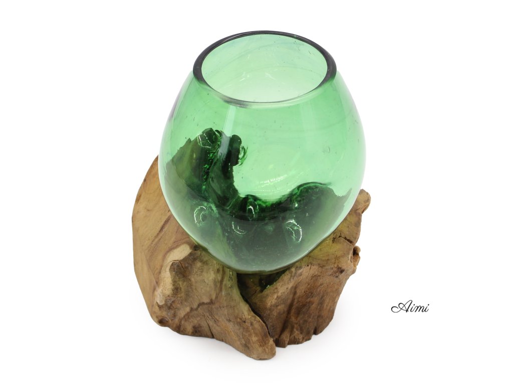 Recyklované Sklo z Pivových Fľiaš - Malá Miska na Dreve