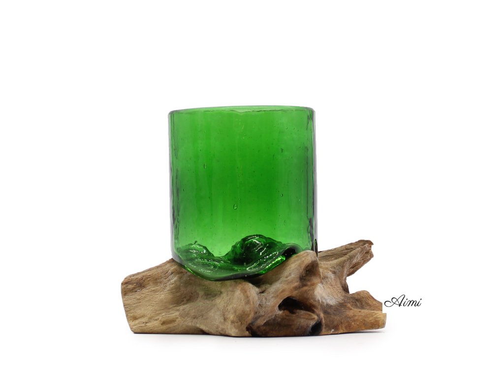 Recyklované Sklo z Pivových Fľiaš - Pohár na Dreve