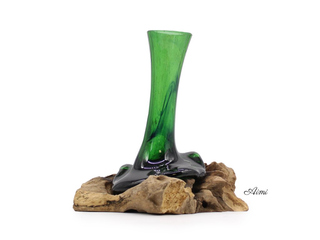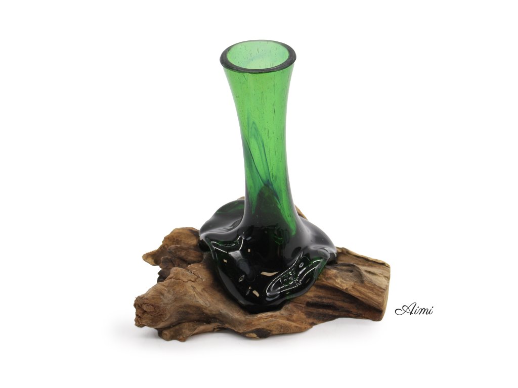 Recyklované Sklo z Pivových Fľiaš - Váza na Kvety na Dreve